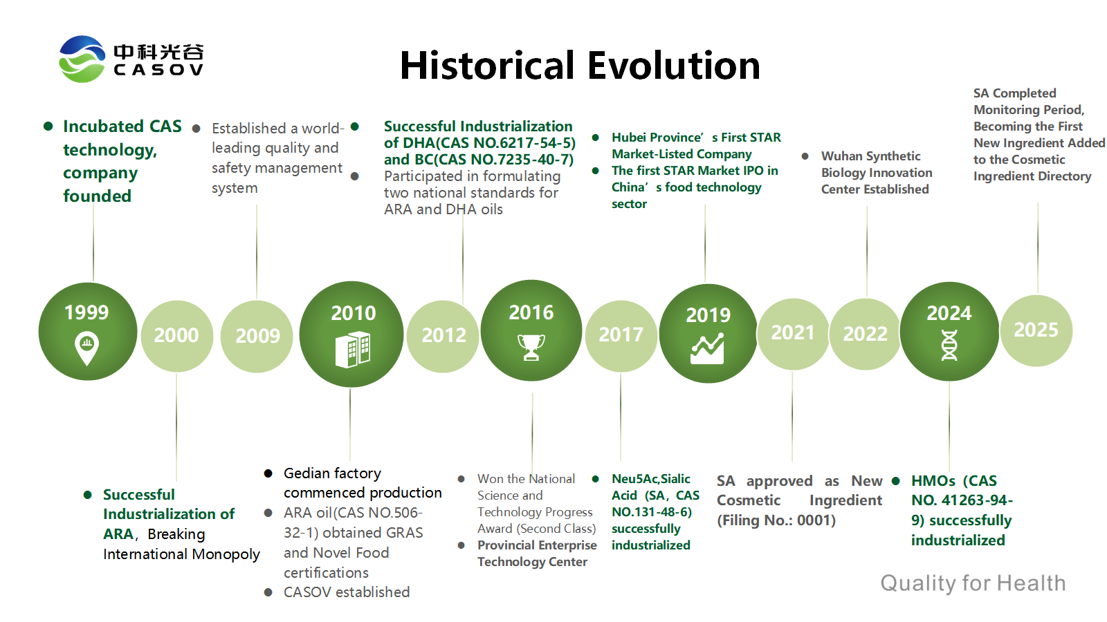 CASOV擁有涵蓋微生物發酵、合成生物學和多組學平台的核心研發能力,並遵循嬰幼兒配方奶粉的生產標準。公司將功效開發、應用支援、標靶發現和高效產品篩選整合到營運中。其產品應用廣泛:在人類營養和健康領域(尤其是在嬰幼兒配方奶粉領域)發揮著重要作用的同時,CASOV近年來已拓展至化妝品、美容和個人護理領域,並逐步進軍動物營養和農業化學領域。
